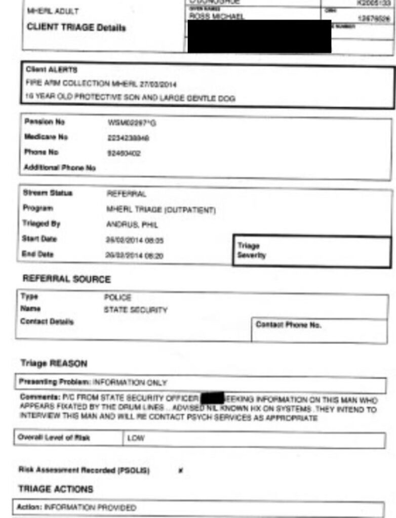 Freedom of information application: Ross Michael O’Donoghue.